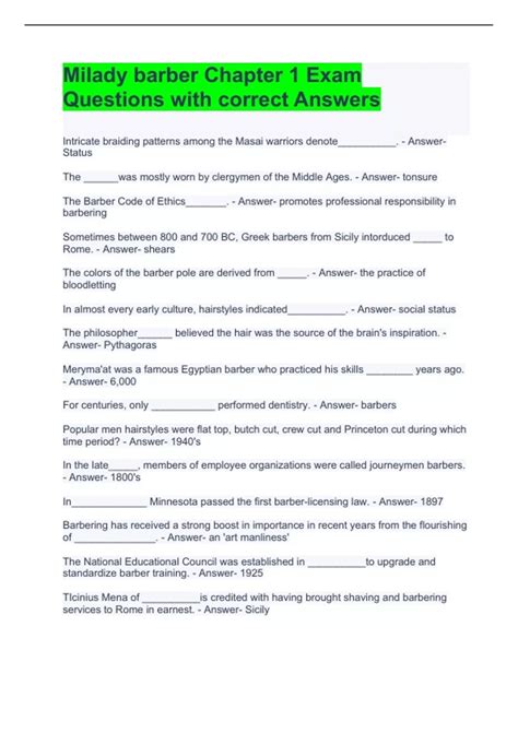 DYQ - Download Milady Barber Test Workbook Answer Key rtf Internet Archive